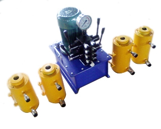 泵站组合为分离设计,由高压胶管、液压泵站、分配阀、双作用千斤顶组合成一个系统,可由一台泵站通过分配阀带动多台千斤顶。也可以根据客户的要求设计。